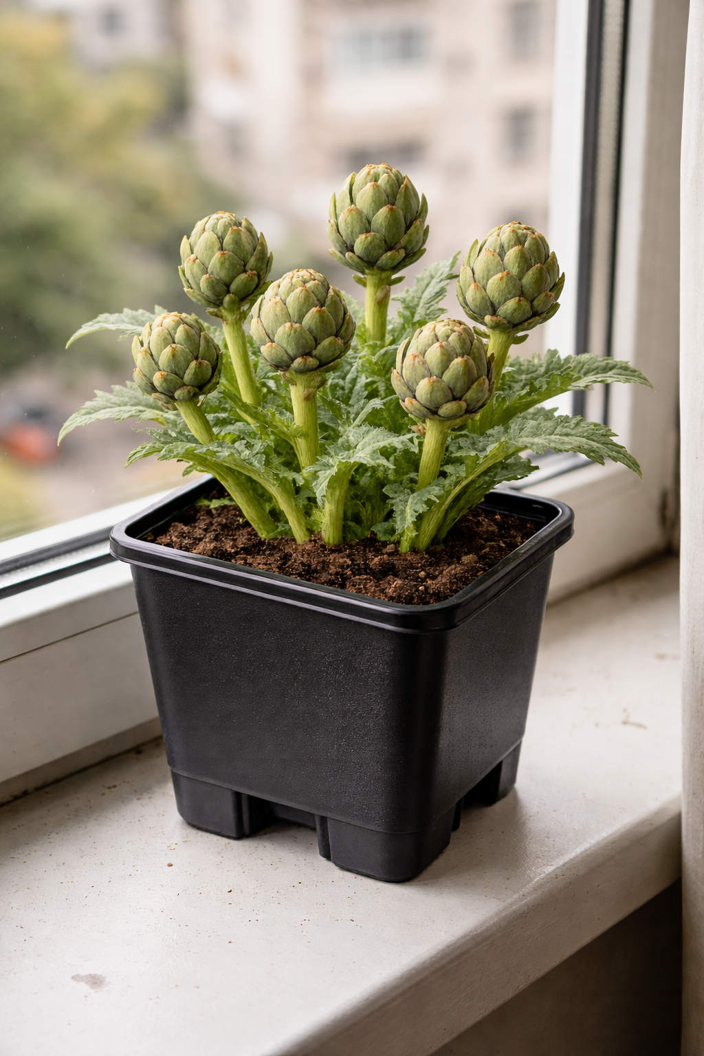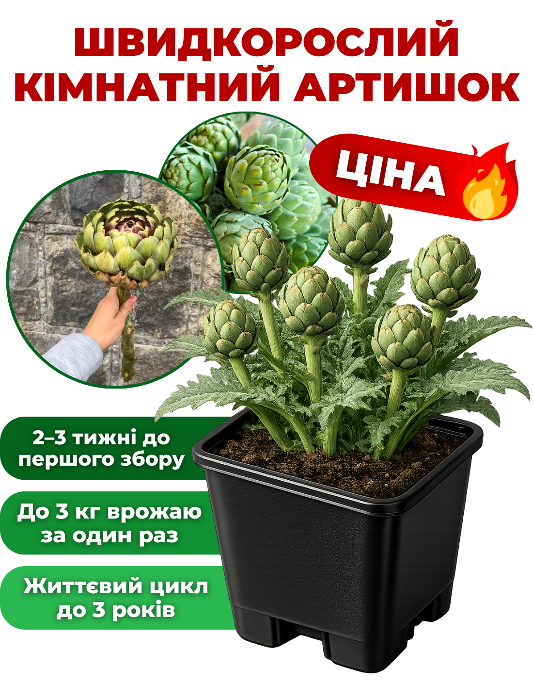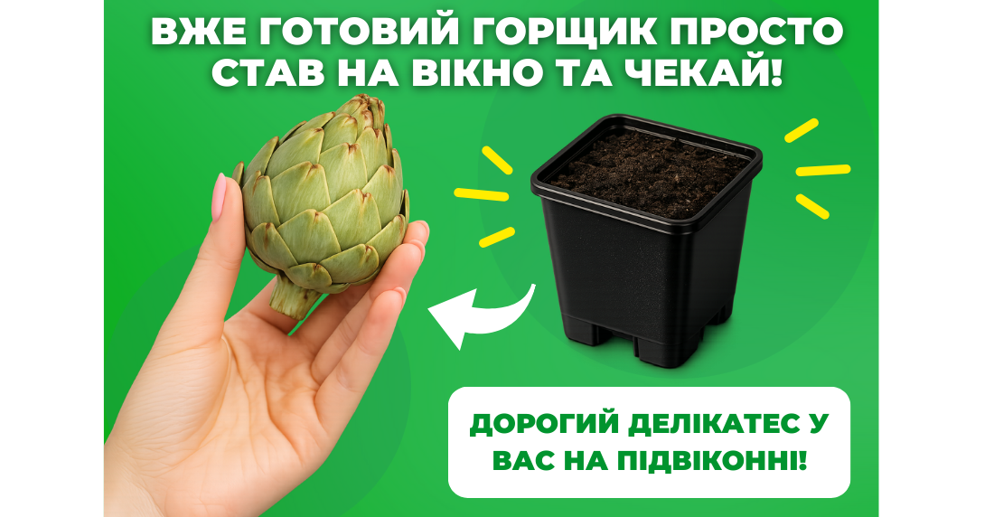 Після отримання горщика достатньо поставити його на світле підвіконня і підтримувати помірний полив. Рослина не зазнає стресу від пересадки, швидко адаптується і починає рости у звичних домашніх умовах. Це зручне рішення для тих, хто хоче вирощувати артишок вдома без досвіду, складних інструкцій і зайвих дій.
