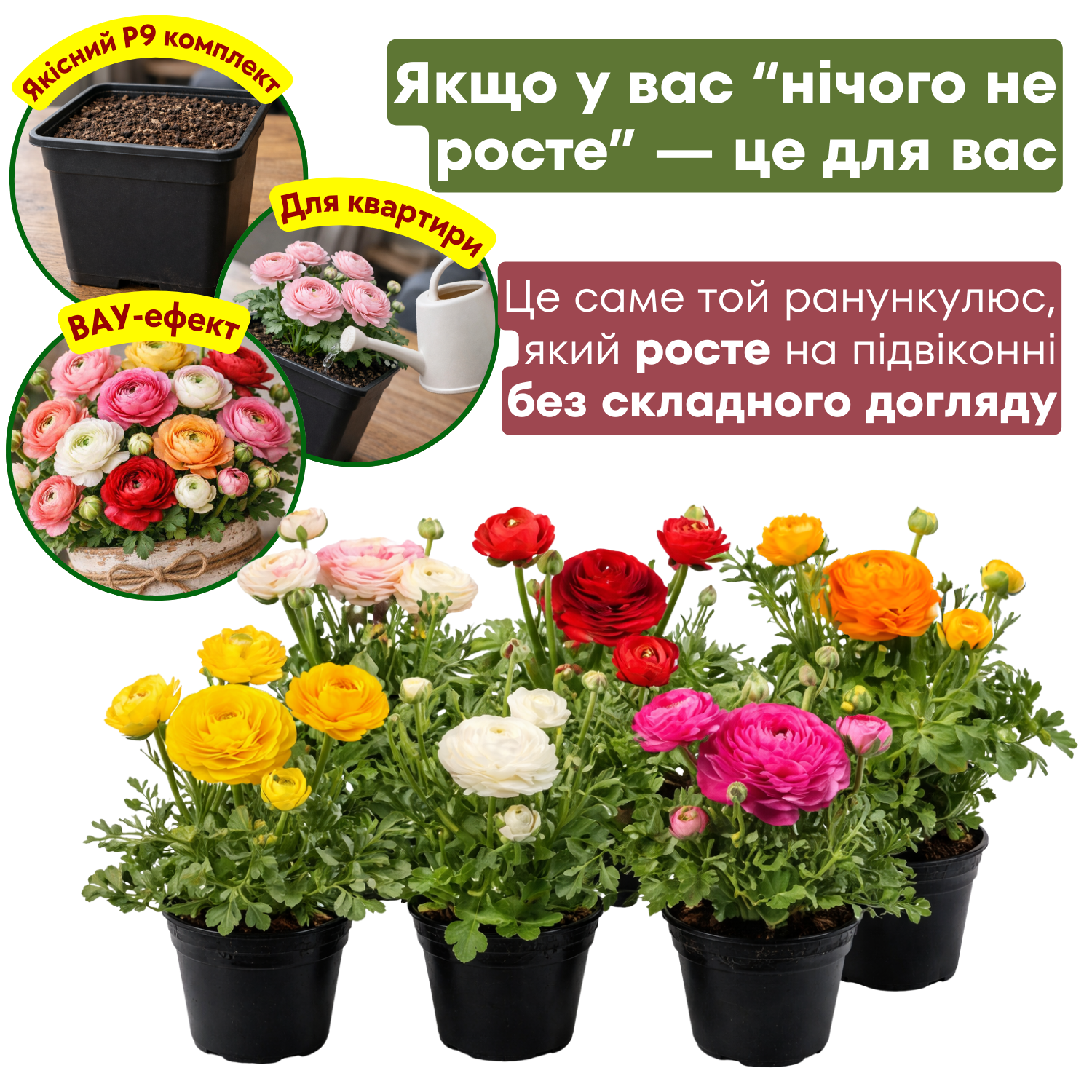 Готовий P9-комплект для кімнатного ранункулюсу : насіння + мінералізований ґрунт = правильний старт