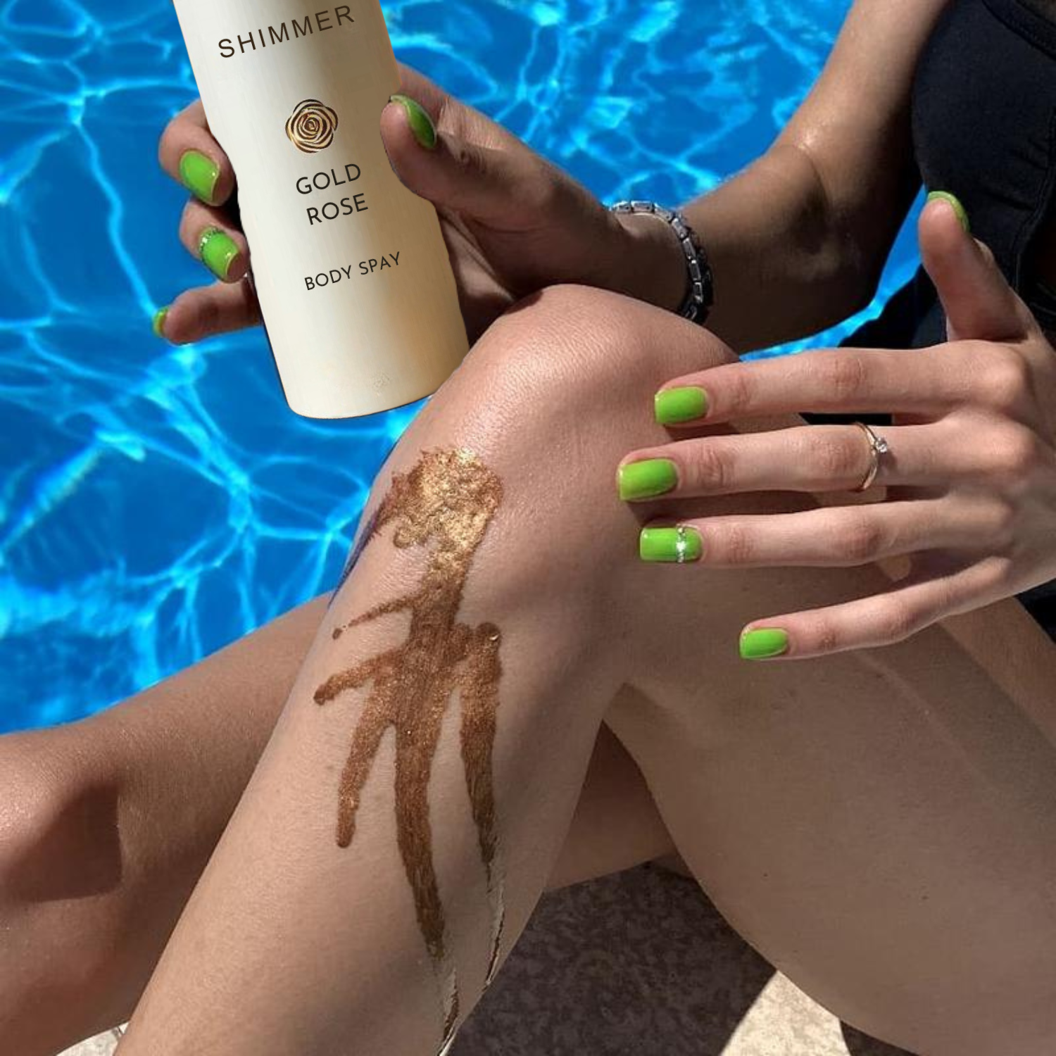 Спрей шимер для тіла "Gold Rose" надає вашій шкірі сяйво та природну засмагу.