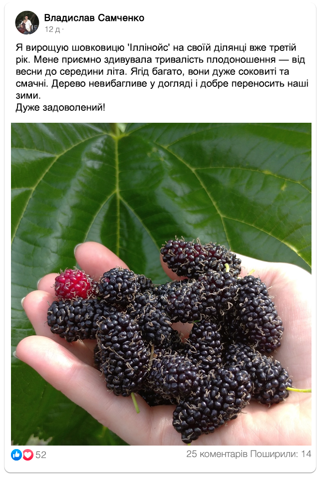 Досвід вирощування шовковиці Іллінойс від задоволених покупців