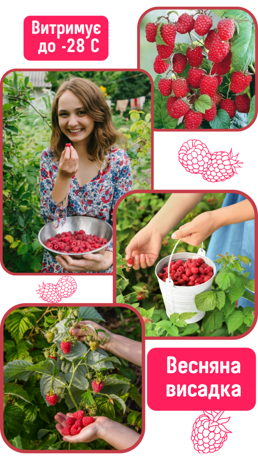 Сорти малинового дерева є справжніми гігантами з товстими стійкими пагонами та величезною масою зелені та великих ягід. Переваги малинових дерев, які яскраво описує реклама, на практиці найчастіше виявляються… правдою! Малинові дерева не лише інтенсивно ростуть, але й дивовижно стійкі і до шкідників, і до хвороб, і до морозів!