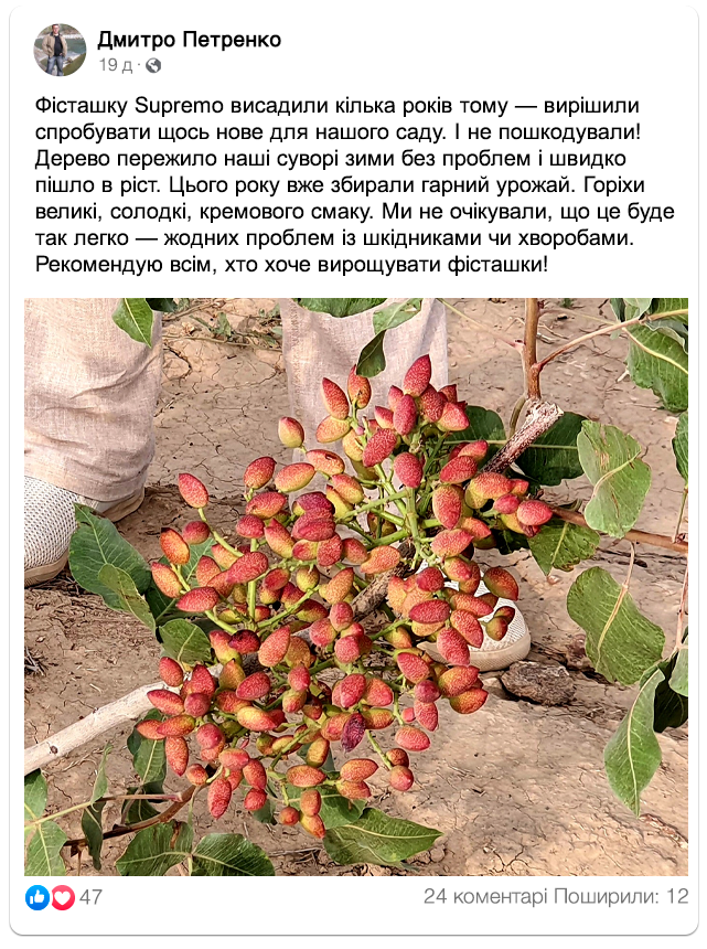 “Supremo” — саме та фісташка, яка дає великі врожаї в Україні!
