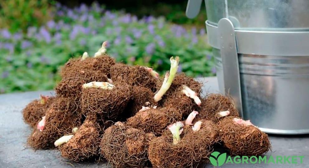 • Восени, після всихання листя, бульби викопують, очищають та просушують.