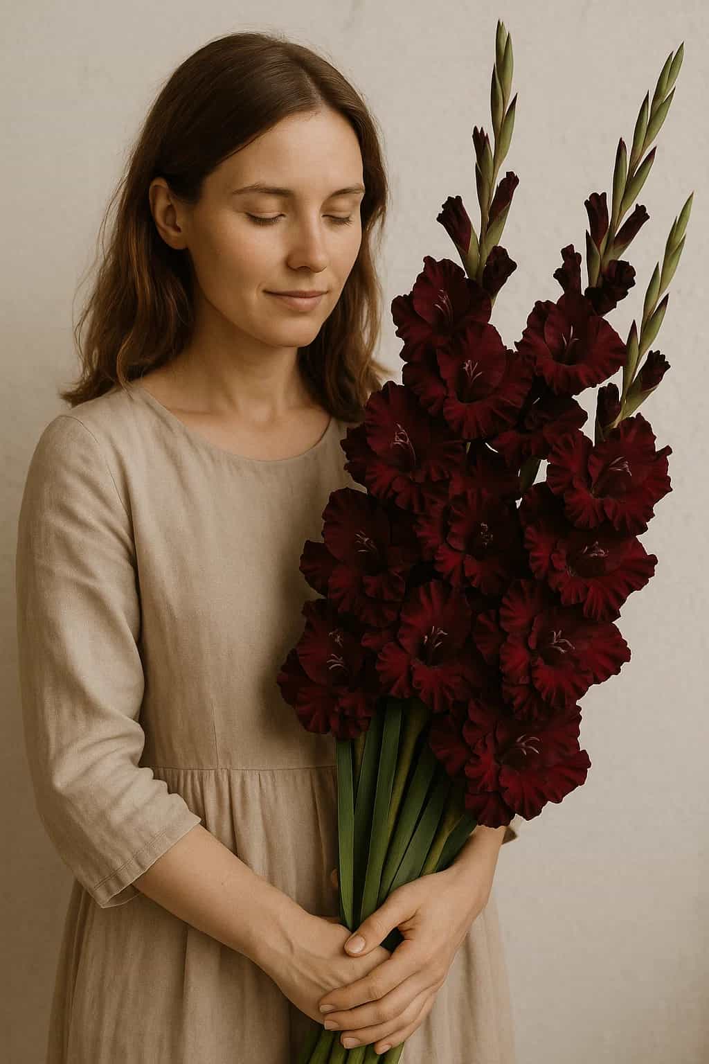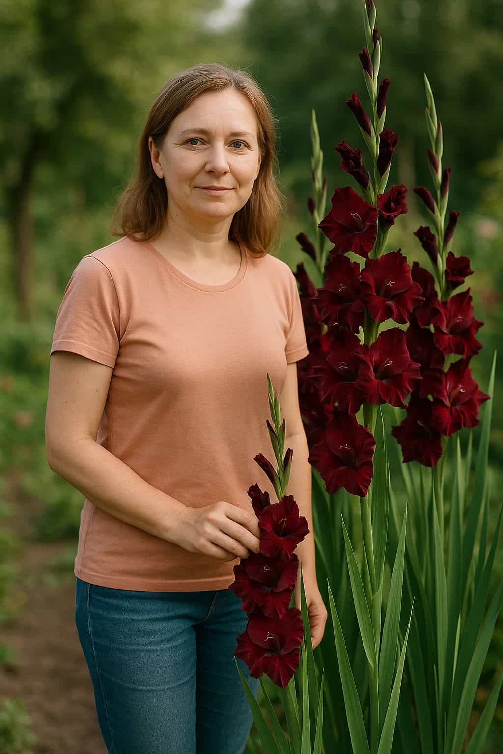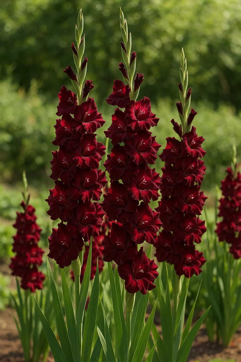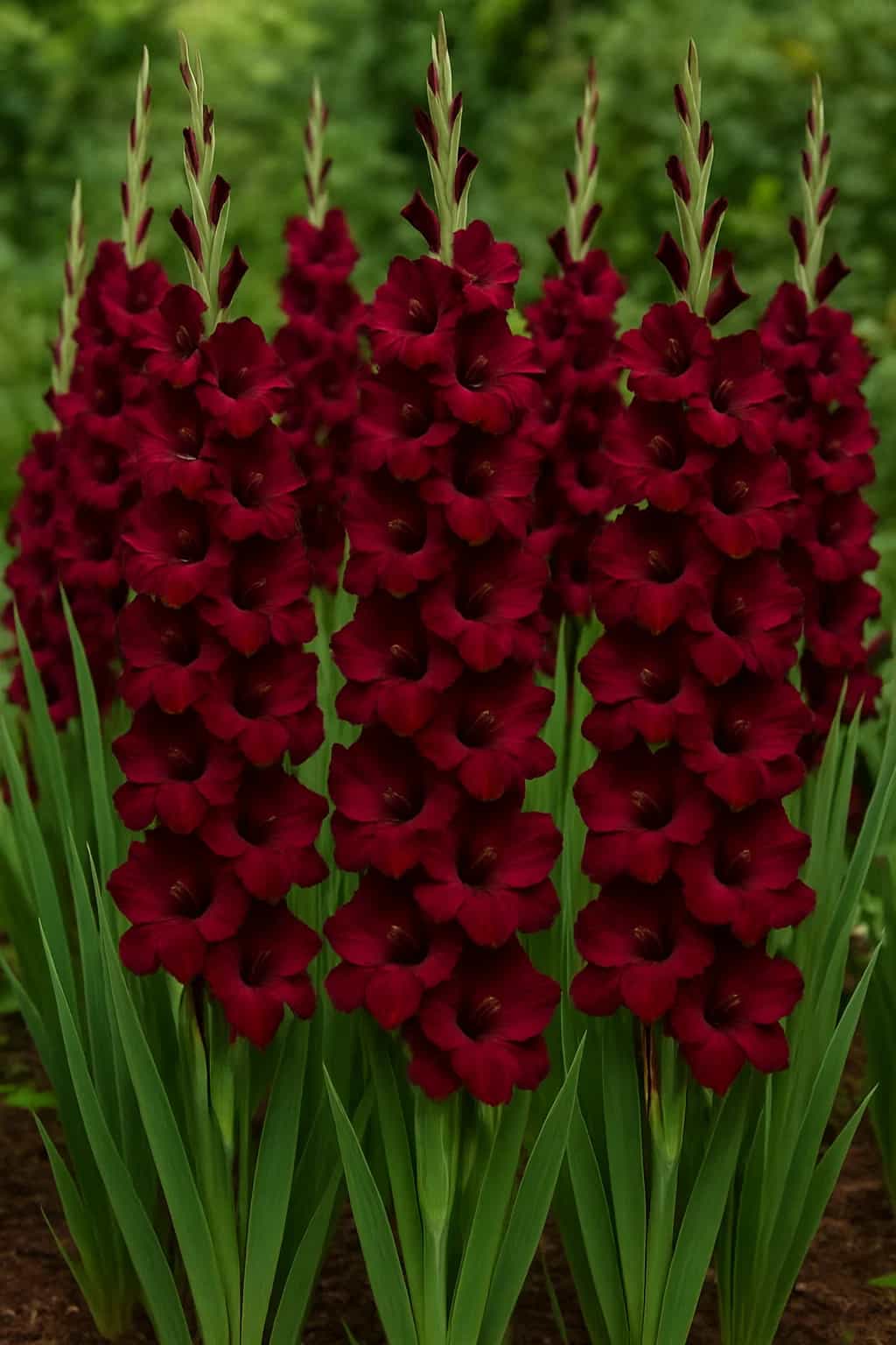 ✅ Унікальний глибокий колір: насичений майже чорний відтінок з винно-бордовими переливами — рідкість у гладіолусів. Ідеально підходить для створення контрасту у міксбордерах та букетах.