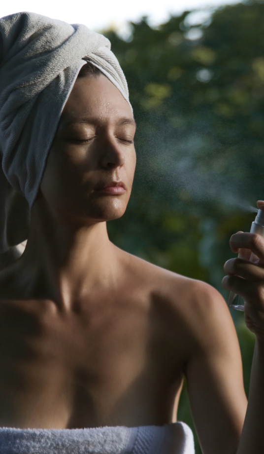 Очистіть обличчя перед нанесенням спрею.